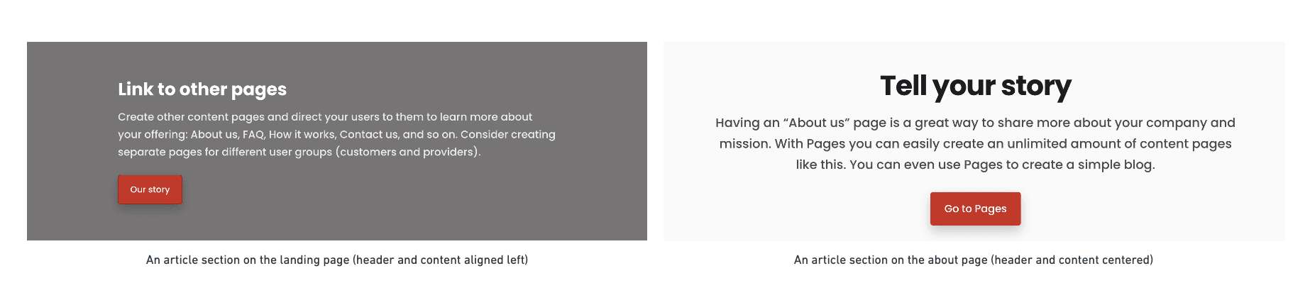 Sharetribe Web Template uses a component called the PageBuilder to render content pages. You will likely want to change the style and structure of content pages, and the PageBuilder is where you should make those changes. It is good to note that changes to the PageBuilder will affect how all content pages are rendered. If you only want to customise a specific section on an individual content page, you need to take a different approach.