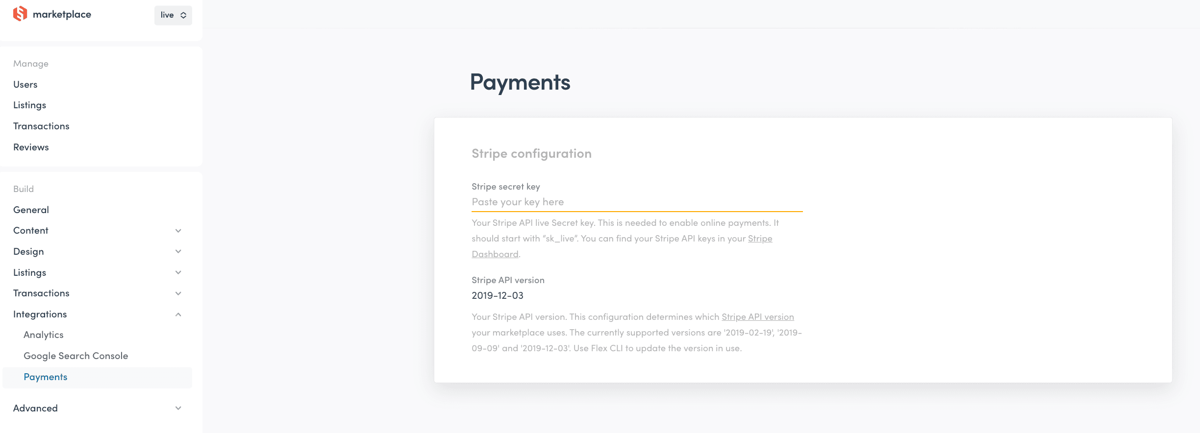 3. Get your API keys from Stripe and add them to your Sharetribe marketplace
